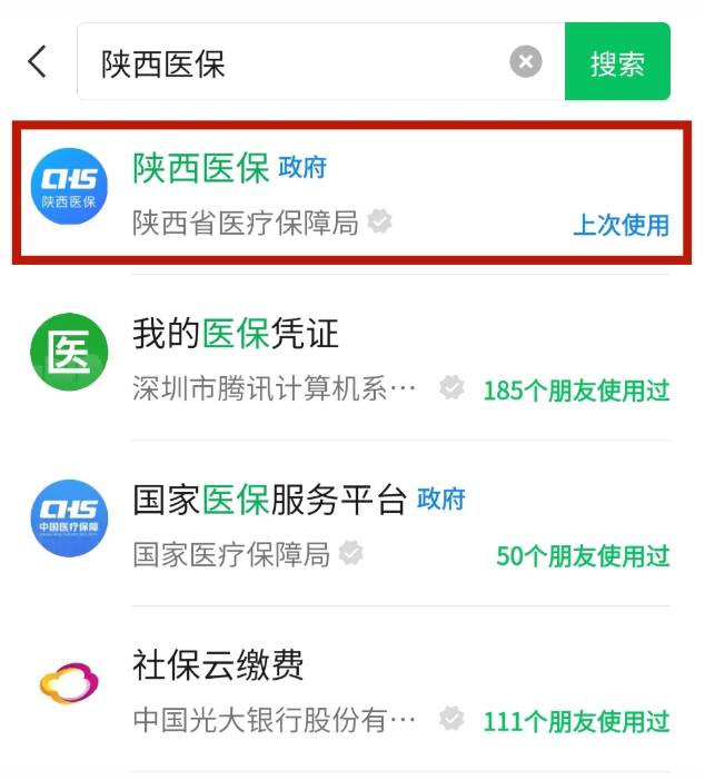 第一步:微信小程序搜索“陕西医保”;