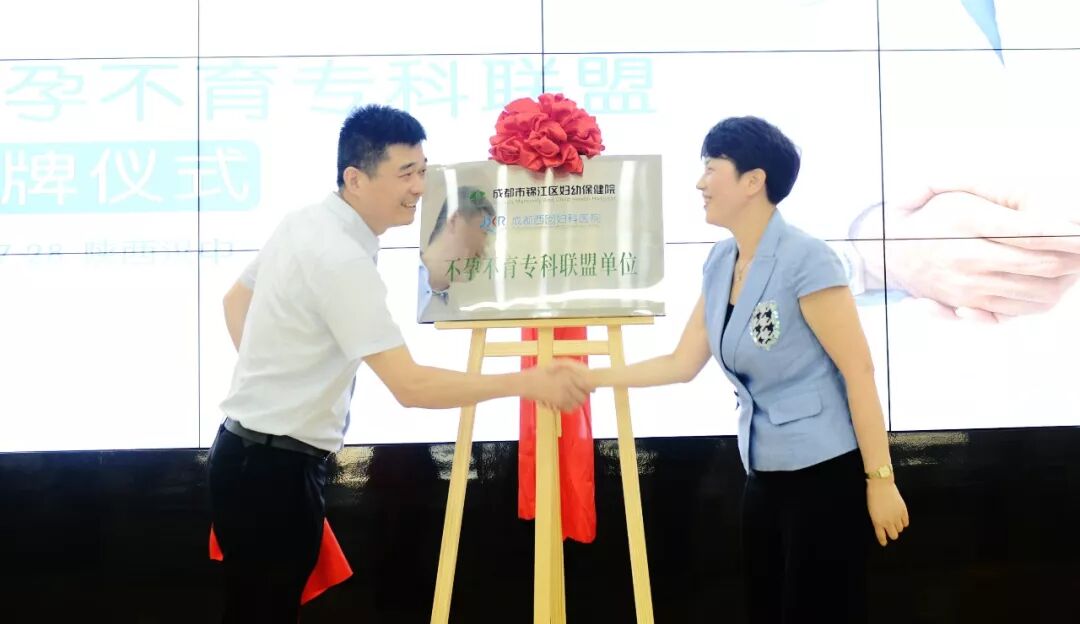 此次学术会开场仪式上由成都锦欣医疗集团旗下锦江妇幼保健院、成都西囡妇科医院)与汉中华西妇产医院双方领导进行了《不孕不育专科联盟单位》揭牌仪式。