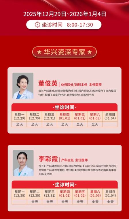 岁序更替,新年来临,我们即将迎来2026年的第一个小长假,汉中华兴妇产医院为满足广大群众节假日期间的就诊需求,给大家提供优质、便捷的医疗服务,元旦假期期间(2026年1月1日至1月3日)继续实行“无假日医院”服务,元旦假期不放假,门诊照常接诊!